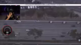 07:44:41Der Stream schlägt abrupt in ein interaktives und spannungsgeladenes Segment um. Es wird eine Live-Verfolgungsjagd auf dem Highway in Los Angeles gezeigt, die offenbar über mehrere Stunden läuft. Der Streamer analysiert das Geschehen mit dem Chat, kommentiert die hohe Anzahl an Polizeiwagen und kritisiert die langsame Verfolgungstaktik der Polizei. Die Verfolgung endet damit, dass der Verdächtige flieht und die Polizei den zweiten, unbekleideten Fahrer festnimmt.