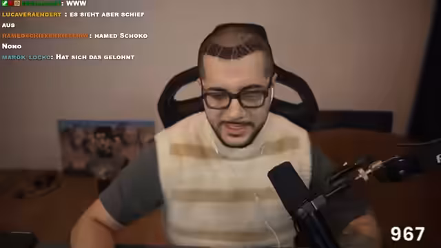 Es wurde über die positive Entwicklung nach einer Haartransplantation berichtet, wobei die Genesung und das Verhalten in der Öffentlichkeit thematisiert wurden. Zusätzlich wurde ein unangekündigter Gast im Stream begrüßt. Der geplante Inhalt umfasste diverse Spiele und Musikbewertungen.