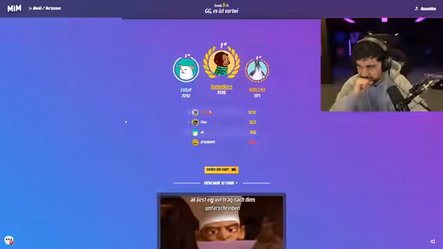 01:46:23Die Runde wird intensiver, und die Spieler versuchen, strategisch vorzugehen. Der Streamer überlegt, ein Meme über 'Abu Shaka' zu erstellen, da Abogoku viele Memes über Ali gemacht hat, um die 'Fitna' (Zwietracht) auf Alis Kopf zu lenken. Die Zeit ist jedoch knapp, und die Qualität der Memes variiert. Einige Memes werden als 'tot' oder 'nicht so crazy' bewertet, während andere als 'krank' oder 'gut' empfunden werden. Der Chat kommentiert die Memes und die Leistungen der Spieler, wobei Rohat für seinen Mut gelobt wird, 'harte' Memes zu erstellen. Ein Meme, das einfach gar nichts hinschreibt, wird als 'Recycling' eines früheren, erfolgreichen Memes bezeichnet. Die Spieler sind sich bewusst, dass sie die vereinbarten Grenzen des Humors einhalten müssen, insbesondere in Bezug auf Elternwitze und Religion, um eine angenehme Atmosphäre zu bewahren. Trotz der Schwierigkeiten und der unterschiedlichen Humorebenen versuchen die Teilnehmer, das Spiel zu genießen und sich gegenseitig zu übertreffen. Die Runde endet mit der Auswertung der Punkte, wobei der Streamer überrascht ist, dass er nicht Letzter geworden ist, und die Gruppe beschließt, eine weitere Runde zu spielen, sobald Edis Chained dazugestoßen ist.