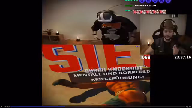 15:47:41Nach einem sehr verstörenden Video, das der Streamer aus Respekt nicht zeigen wollte, folgte eine Reihe absurder Clips. Zuerst wurde eine Frau gezeigt, die sich aggressiv durch Polizisten drängte, nur um einen Müllsack abzuliefern. Es folgte ein Video eines Bären, der unerwartet gut Karate-Tricks zeigte, was einen drastischen Kontrast zum vorherigen Inhalt bildete. Der Streamer, müde von seinem 24-Stunden-Marathon, reflektierte seinen ungewöhnlichen Schlafrhythmus und erinnerte die Zuschauer daran, dass es kein Zurück mehr gibt.
