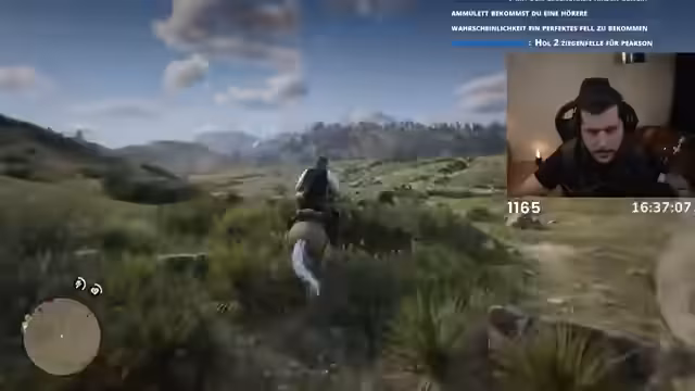 04:14:59Die Jagd auf legendäre Tiere steht im Mittelpunkt, wobei der Streamer aktiv mit seinem Pferd interagiert und dabei seine Eindrücke vom Spiel teilt. Er beschreibt die schöne Landschaft mit einer Schweiz-Kanada-Vibe und erwähnt den Ort Grindelwald aus einem Vlog. Während der Jagd gibt es zahlreiche humorvolle Momente, wie das versehentliche Töten des eigenen Pferdes namens Polo, und der Streamer äußert seine Begeisterung für das Spiel und seine offene Welt.
