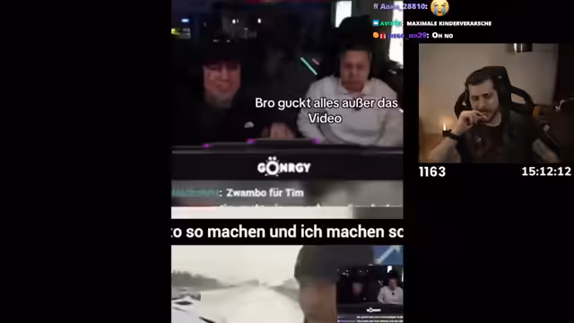 08:51:13Ein weiteres Beispiel für Tim Gios Verhalten ist sein Schummeln in einer 'Nicht-Lachen-Challenge' mit Monte, bei der er den Blick in die Kamera richtete, anstatt auf den Bildschirm zu schauen. Der Streamer kritisiert dies scharf und bezeichnet Tim Gio aufgrund dieses und weiterer Vorfälle nicht als 'Goat'. Er fragt seine Zuschauer um ihre Meinung und veranstaltet ein kleines Ratespiel, wie lange es dauern wird, bis Tim Gio einen 'Fell-Off' erleidet, also an Popularität verliert, falls er sein unsympathisches Verhalten nicht ändert. Der Stream endet mit dieser Frage an das Publikum.