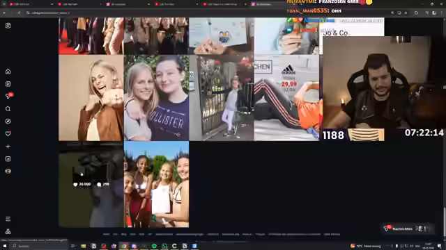 08:23:59Während des Streams erhalten zwei gleichzeitige Raids von anderen Kanälen, was als besondere und seltene Situation beschrieben wird. Der Streamer spricht über ein eigenes Video, in dem er über den TikTok-Content Creator Tim Gio spricht. Dieser ist aufgrund seiner vielen Memes und Fehltritte, wie das Schummeln in Challenges, zum Gesprächsthema geworden. Der Streamer analysiert verschiedene Clips von Tim Gio, insbesondere seinen gemeinsamen Mario Kart Stream mit anderen YouTubern und seine nachfolgenden Aussagen über mögliche Kooperationen.