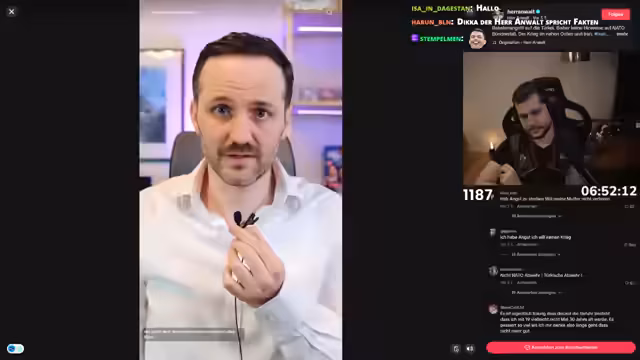 17:08:38Der Streamer wechselt zu einem politischen Thema und berichtet über die aktuelle Spannung im Nahen Osten. Die USA haben angeblich eine iranische Fregatte versenkt und die NATO hat eine iranische Rakete abgefangen. Diese Entwicklungen führen zur Frage, ob der NATO-Bündnisfall nach Artikel 5 aktiviert wurde. Der Streamer erklärt jedoch, dass ein solcher Fall politisch im Konsens aller Mitgliedstaaten entschieden werden muss und Deutschland explizit betont hat, keine Kriegspartei zu sein. Die Rolle von Russland und China wird als diplomatische Kritik beschrieben, während der Fokus auf den leidenden Zivilisten im Nahen Osten liegt.