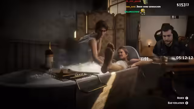 18:42:01Der Streamer befindet sich überraschend im Gefängnis und nimmt es mit Humor. Nachdem eine Mission scheinbar fehlschlägt, wird ihm klar, dass er und sein Begleiter nur getrunken haben, anstatt Micah zu retten. Nach dem Ausbruch beschließt er, sich eine Pause zu gönnen und nimmt in einem Hotel ein Bad. Dabei wird er von einer Frau gewaschen, was für Verwirrung sorgt, und er beschließt, sich danach einen Bart zu wachsen, was ihm im Chat Zuspruch erhält.