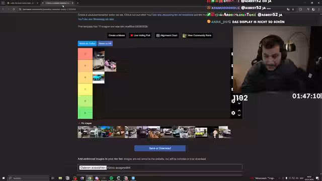 22:16:06Im Rahmen der Auto-Bewertungen wird Bentley Continental von Gökhan vorgestellt. Der Streamer ist beeindruckt von der hochwertigen Verarbeitung, dem luxuriösen Lederinterieur und der allgemeinen "Geborgenheit", die das Auto vermittelt. Er platziert den Bentley hinter dem Rolls Royce, bewertet ihn aber im Komfort über Sportwagen wie einen Ferrari oder McLaren.