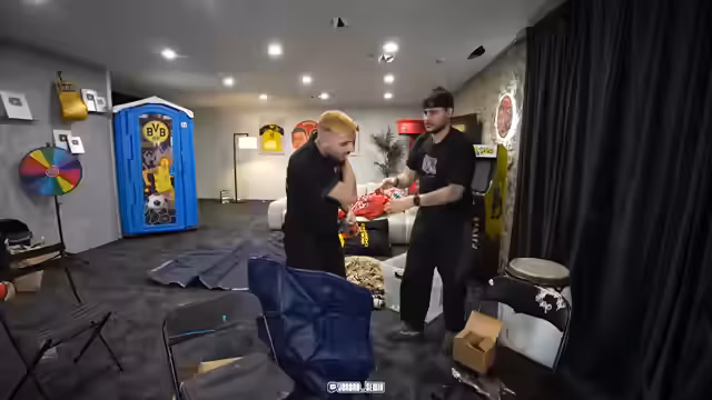 04:32:12Die Streamer wenden sich einem neuen Projekt zu: dem Anruf von Pranklos-Marvin. Dieses Unternehmen gilt als ihr Traum für einen Prank. Jordan ist sich unsicher, ob Marvin reagieren wird, da es spät ist und die Chancen gering scheinen. Gleichzeitig bereiten sie sich auf den eigentlichen Zweck des Streams vor: den gemeinsamen Schlaf. Jordan bittet Sammy, wie man Matratzen aufbaut, da der Raum noch nicht schlafgerecht ist. Es wird eine Diskussion über die Schlafanordnung und der Wunsch, sich nicht zu nah zu schlafen, was eine humorvolle Dynamik erzeugt.