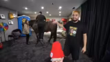00:59:11Nach den vielen Stürzen und dem apparent Scheitern des Bullenriding-Experiments wird die Situation als beendet betrachtet. Die Teilnehmer, insbesondere Jordan, fühlen sich schwindelig und müssen sich hinlegen. Es wird humorvoll und fälschlich die stabile Seitenlage für einen verletzten Teilnehmer erklärt, was zu einem amüsanten und chaotischen Höhepunkt des Streams führt.
