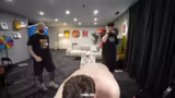 00:36:28Als Vorbereitung auf das Bullenriding findet die Bananen-Sprite-Challenge statt. Die Streamer essen Bananen und trinken anschließend Sprite, was oft zu Erbrechen führt. Wichtig ist ein neues Regelwerk für die Nacht: Wer den Teppich im Studio dreckig macht, muss eine Strafe zahlen, und das Setup muss intakt bleiben. Das Setup wird durch die Challenge beschädigt, was zu Diskussionen führt.