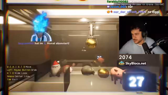 04:56:48Während des intensiven Spielens des dritten Horrorspiels, in dem er 50 Spielzeuge aus Automaten gewinnen muss, während ein Mörder ihn verfolgt, bedankt sich der Streamer für einen Raid von Fatih. Dies zeigt eine Kooperation mit einem anderen Kanal, bei der Fatih seine Zuschauer zum Stream schickt, um die Sichtbarkeit zu erhöhen und die Community zu vernetzen.