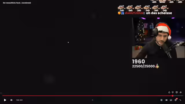 04:55:23Der Streamer zeigt selbst erstellte Bilder und Videos in schlechter Qualität (260p), was ihn sichtlich frustriert. Er kritisiert die Qualitätsprobleme und seine eigenen Edits mit CapCut, bezeichnet sie als 'katastrophal' und 'schlecht'. Mehrfach äußert er Verzweiflung ('Ich habe aufgegeben'), während er auf bearbeitete Inhalte reagiert, die seine弱点 ausnutzen. Die Stimmung wird zunehmend negativ, als er weitere minderwertige Edits präsentiert bekommt, darunter ein 'Among Us'-Edit, das er als 'gruselig' und 'painful' beschreibt.