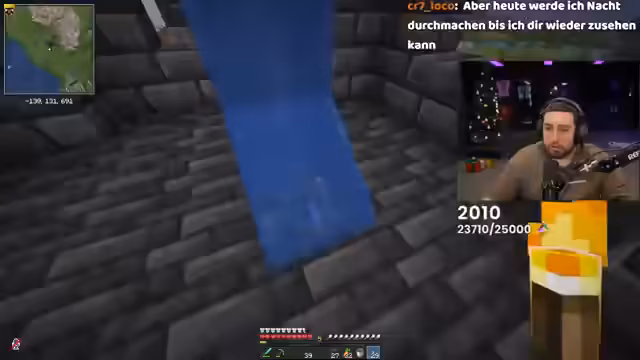 07:29:37Der Streamer erhält Aufgaben von Hametz (Manager Manel): 16 Cobblestone farmen, Obsidian herstellen und Smaragde schaffen. Er plant einen Wasseraufzug für den Palast, um höhere Ebenen zu erreichen, und diskutiert die Konstruktionsweise. Probleme mit Creepern und Zombies unterbrechen regelmäßig die Arbeit, während er mit Digi zusammenarbeitet.