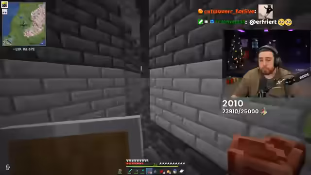 00:38:49Der Streamer und Assi gehen auf Tiefen-Schiefer-Kiefer-Jagd für den Bau von Wachtürmen und geheimen Chests. Sie finden einen Warden, looten Kisten und diskutieren über strategische Lagerorte. Assi zeigt eine verzauberte Rüstung, die repariert werden muss. Gemeinsam bauen sie einen Wachposten mit Aussichtstürmen aus Bruchziegeln und planen eine Straße sowie verborgene Betten für sichere Übernachtungen.