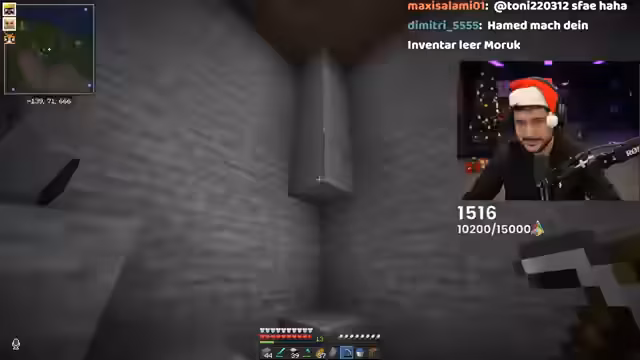 12:43:42Der Fokus liegt auf intensivem Farmen und Crafting in Minecraft: Holz, Smaragde und Kürbisse werden gesammelt, um Gegenstände wie Falltüren und Türen herzustellen. Ein großes Bauvorhaben wird angedeutet, während die Community bei der Materialbeschaffung (z.B. Obsidian und Sand) unterstützt. Diskussionen über AFK-Zeiten und Server-Aktivitäten dominieren, während der Streamer strategische Entscheidungen für Ressourcenverteilung trifft.