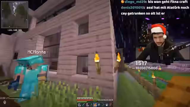 06:42:53Der Streamer stellt FitnaCraft vor, ein Minecraft-Abenteuer, und erklärt Kernmechaniken wie das Map-System, Crafting und Basisorganisation. Es folgen Kooperationen mit Spielern wie Bartu, wo Materialien wie Smaragde und Sticks gemeinsam gefarmt werden. Diskussionen über Survival-Strategien, Lagerverwaltung und Teamwork dominieren die Session. Der Streamer betont die Wichtigkeit von Disziplin und zeigt, wie man Gruppen bildet und auf Servern interagiert, während technische Aspekte wie Mutes und Inventory-Management erklärt werden.