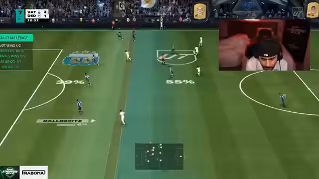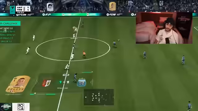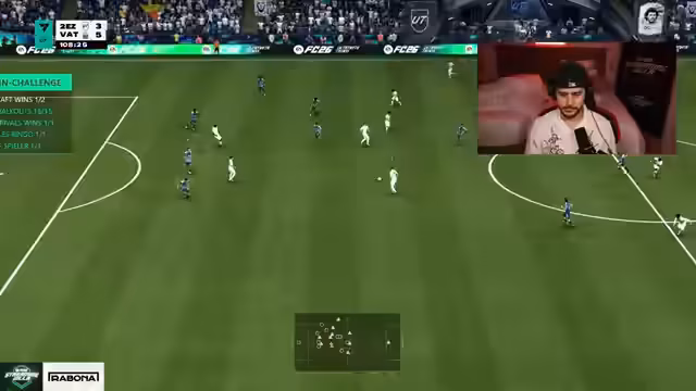 09:40:12Es besteht massive Frustration über den Spielverlauf und die Statistiken der Spieler. Der Streamer verliert das 55.000 Punkte Pack Opening und ist unzufrieden mit der Performance der Spieler, insbesondere dass Eusebio sich nicht anbietet und Quakland ein Lauf-Duell verliert. Die Musik wird als Beruhigungsmittel genutzt und es werden taktische Fragen zur Formation wie Dreier- oder Fünferkette diskutiert, wobei der Fokus auf einer stabilen Verteidigung und einem geilen Mittelfeldspieler liegt.