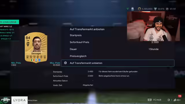 06:06:41Es wird über den Transfermarkt und den Handel mit Spielkarten gesprochen. Der Streamer berichtet von überhöhten Preisen für Icons und anderen Top-Spieler, die auf einem All-Time-High liegen. Er hat versucht, Spieler zu verkaufen, ist aber bei dem Versuch, neue Spieler zu kaufen, auf steigende Kurse gestoßen. Es werden aktuelle Player-Preise genannt und über den Wert potenzieller Kandidaten wie Mia Hamm oder Zico diskutiert, wobei die Frage nach dem besten Zeitpunkt für einen Kauf im Raum steht.