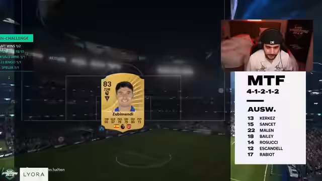 10:15:17Der Streamer äußert seine Ansicht, dass der E-Sport psychisch sehr fordernd sei, insbesondere durch Trash-Talk und Gegner, die seine Nerven auf die Probe stellen. Er kritisiert auch, in diesem Jahr keine FIFA-Codes erhalten zu haben. Parallel dazu wird ein Sponsor-Deal mit Danny besprochen, der die Challenge finanziell unterstützt, und die Community über Taktiken und Spielstrategien wie die Sydney-Taktik befragt.