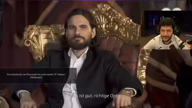 01:55:51Der Streamer startet das Dating-Simulationspiel 'Seducer 2'. Zunächst gibt es technische Probleme mit der Twitch-OAuth-Verbindung ('O-A-U-T-H'), die diskutiert werden. Nach Lösung der Probleme betritt er den Geschichtsmodus (Kapitel 1: 'Vornehme Frau vs. Supermodel'). Es entstehen humorvolle Szenen, in denen er Strategien zum Ansprechen von Charakteren ausprobiert (z.B. 'nonverbal mit Penis-Winken'). Interaktionen mit Charakteren wie Lotte werden versucht, dabei entstehen komische Momente (z.B. ungepflegte Hemd-Auswahl). Der Streamer reagiert live auf Chat-Vorschläge, entscheidet sich für Bestellungen (Tee/Kuchen) und muss unterbrechende Anrufe (z.B. von 'Mahmoud') verwalten. Die Gaming-Sitzung ist geprägt von chaotischer Improvisation und ironischen Kommentaren zum Spielverlauf.