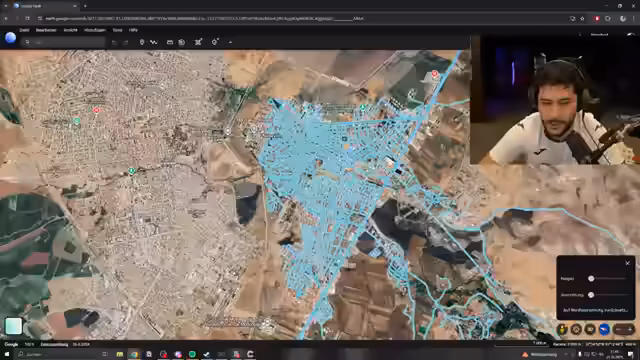 00:09:14Mit Google Earth wird Syrien erkundet, basierend auf persönlicher Bindung, da die Eltern des Streamers von dort stammen. Der Fokus liegt auf der Visualisierung, ob Orte als hässlich eingestuft werden können. Es werden Diskussionen über die Ästhetik geführt und der Chat einbezogen.