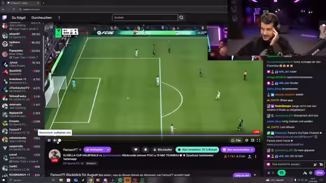 00:26:18Streamer startet mit dem von seinem Bruder zusammengestellten Team in den Eligella Cup. Er betont, dass sein Bruder die Hälfte des Gewinns erhält, falls er gewinnen sollte. Das erste Spiel ist gegen Faro, den er als sehr starken Gegner einschätzt. Trotzdem ist er motiviert, sein Bestes zu geben. Er gesteht ein, dass er das Team noch nicht ausreichend trainiert hat und es sein erstes Spiel mit dieser Formation ist. Streamer beschreibt wie er im ersten Spiel Schwierigkeiten hat und von Faro dominiert wird. Trotz eines zwischenzeitlichen Rückstands kann er das Spiel drehen und ein Unentschieden erreichen. Er lobt Faros Spielstärke und gesteht ein, dass er sich sehr anstrengen musste, um mithalten zu können.