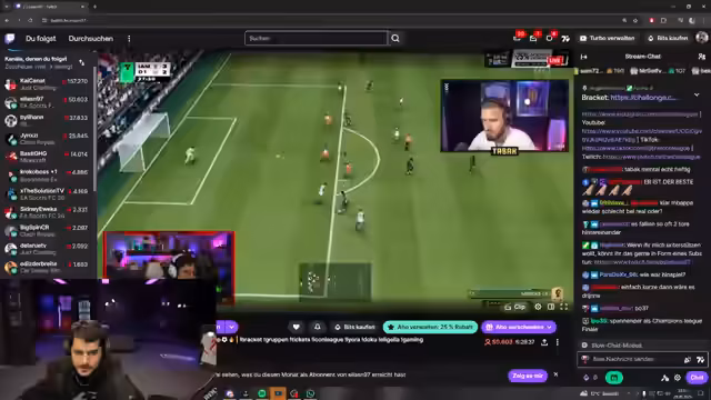 01:52:09Während eines wichtigen Spiels treten massive technische und Chat-Probleme auf. Der Streamer wird durch negative und provokative Chat-Kommentare dermaßen abgelenkt und verärgert, dass er seinen Fokus verliert und das Spiel deutlich mit 4-1 gegen Willi verliert. Er beschwert sich über den roten Chat und droht, ihn abzuschalten, was er später auch umsetzt.