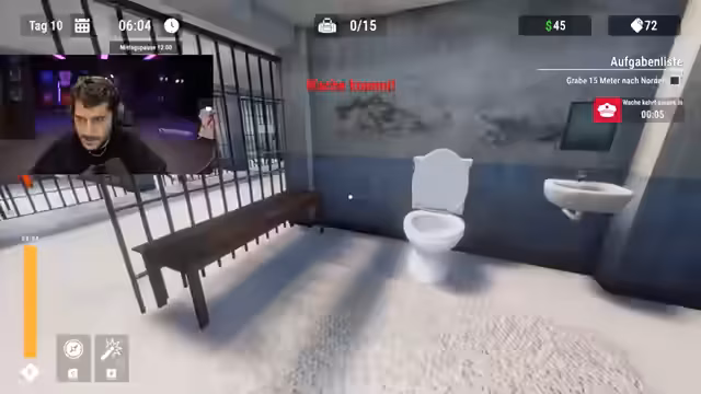 06:48:08Mit einer starken Schaufel ausgestattet, fühlt sich der Streamer optimistischer, aber die Herausforderungen nehmen nicht ab. Er muss weiterhin zwischen dem Sammeln von Ressourcen, dem Absolvieren von Missionen und dem Vorbereiten auf die Flucht jonglieren. Die Angst, in der Zelle feststecken zu bleiben, ist ständiger Begleiter. Mittagspausen bieten neue Möglichkeiten, aber auch Risiken, da der Ablauf unvorhersehbar ist und seine Zeit knapp bemessen bleibt.