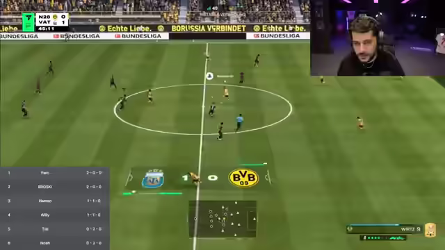 02:02:21Es wird die Bedeutung des letzten Spieltags hervorgehoben, bei dem noch viel passieren kann. Er äußert die Hoffnung, dass Noah gegen TZ gewinnt, um seine eigene Position zu verbessern. Es folgt eine kurze Pinkelpause, bevor er sich auf das Spiel gegen Gamerbrother vorbereitet. Er nimmt einige Team-Einstellungen vor, um sein Team optimal aufzustellen. Es wird die Wichtigkeit des Spiels gegen Gamerbrother betont, das darüber entscheidet, ob er oder die Teasies weiterkommen. Er erwähnt, dass er versehentlich sein normales Team ausgewählt hat. Es wird ein Fehler im Spiel festgestellt, bei dem Hakimi im Tor steht. Nach einem Abbruch des Spiels und Problemen mit der Freundschaftsanfrage an Broski, äußert er seinen Frust über das Spiel und die technischen Schwierigkeiten. Er vermutet, dass Broski ihn aus seiner Freundesliste entfernt hat und kann ihn nicht erneut hinzufügen. Trotz der Schwierigkeiten versucht er, das Problem zu lösen und das Spiel zu starten.