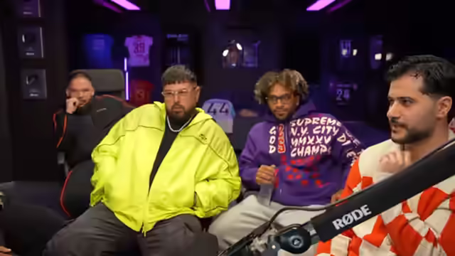 00:28:08Die Gäste treffen ein und es wird über eine gemeinsame Erfahrung in Rio gesprochen, wo sie im selben Haus wie Vince, ein Schauspieler aus 'Ghetto selbst', wohnten. Es wird über die Lautstärke während eines Musikvideodrehs und eine Beschwerde von Vince berichtet. Anschließend wird über das neue EAFC (ehemals FIFA) diskutiert. Es wird festgestellt, dass es besser als das Vorjahr sei, aber das letzte Jahr sehr schlecht war. Baris Big Champ hat bereits drei Hot Chips gegessen und sagt, dass er jünger ist. Es wird überlegt, was für Challenges gemacht werden sollen, damit Baris Big Champ verliert und Hot Chips essen muss. Es wird darüber gesprochen, dass EAFC dieses Jahr schwerer ist, da Time-Finish entfernt wurde.