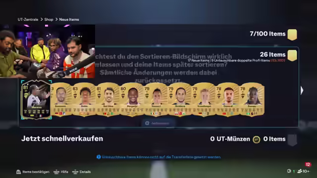 00:48:14Es werden Packs geöffnet und es wird festgestellt, dass nur Müll gezogen wurde. Es wird gefragt, ob wenigstens ein Walkout gezogen wurde. Julian soll sich um den roten Chat und roten Titel kümmern. Es wird über die Größe von Baruch diskutiert. Es wird über die Packs diskutiert. Es wird gesagt, dass die Packs raus sind. Es wird gesagt, dass man nur noch 5.000 Punkte hat. Es wird gesagt, dass man die Infos lesen will. Es wird gesagt, dass man mit den Schlechten anfängt. Es wird gesagt, dass das beste Pack ist. Es wird gesagt, dass man mit den Schlechten anfängt und immer durchgibt. Es wird gesagt, dass man alle ausdecken soll. Es wird gesagt, dass man nicht mehr diese Packs ziehen wird. Es wird gesagt, dass man jetzt den Ding kommt. Es wird gesagt, dass man rechts da anfangen kann. Es wird gesagt, dass Talichka stark ist. Es wird gesagt, dass die bei Fenner ist. Es wird gesagt, dass alle hier Fennet sind, außer Villa Joe. Es wird gesagt, dass die Packs Abzieher-Packs sind.