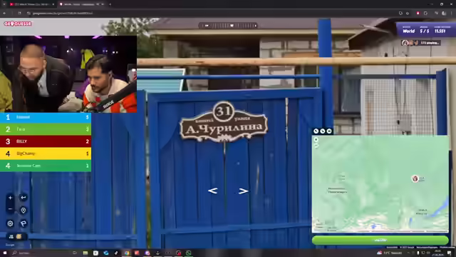 01:46:21Die Geoguessr-Runden werden fortgesetzt, wobei die Kilometer der drei Runden zusammengezählt werden, um den Gewinner zu ermitteln. Der nächste Spieler ist an der Reihe, und es wird versucht, anhand von Läden und Kennzeichen den Standort zu bestimmen. Es wird vermutet, dass es sich um Kanada handelt, und schließlich auf Quebec City getippt, was sehr nah am tatsächlichen Standort liegt. Der nächste Spieler ist an der Reihe, und es wird versucht, anhand von Zebrastreifen und Verkehrszeichen den Kontinent zu bestimmen. Es wird vermutet, dass es sich um Russland handelt, aber schließlich auf Kasachstan getippt, was näher am tatsächlichen Standort liegt. Der nächste Spieler ist an der Reihe, und es wird versucht, anhand von Kennzeichen und Flaggen den Standort zu bestimmen. Es wird vermutet, dass es sich um Rumänien handelt, und schließlich auf Brazov getippt. Es wird festgestellt, dass einige Spieler sehr gut in diesem Spiel sind und sehr genaue Schätzungen abgeben.