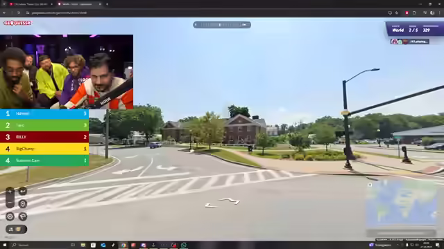02:02:23Die Gruppe steht vor der Herausforderung, den Standort in Asien zu bestimmen, wobei Thailand, die Philippinen, Malaysia und die Mongolei als mögliche Optionen genannt werden. Es wird erörtert, wie man sich strategisch positionieren kann, um in der Nähe potenzieller Ziele zu sein. Myanmar wird als möglicher Standort identifiziert, was jedoch zu einem Punktverlust führt. Die Spieler analysieren die aktuelle Rangliste und bereiten sich auf die letzte Runde vor. Es folgt eine Diskussion über die nächste Umgebung, die anscheinend in den USA liegt, möglicherweise Florida. Die Gruppe kommentiert die Unterstützung der Streitkräfte, die auf einem Schild zu sehen ist. Es kommt zu Verwirrung über den Timer und die verbleibende Zeit. Ein Spieler entdeckt eine Statue und versucht, Hinweise auf den Standort zu finden, wobei New York als Möglichkeit genannt wird. Die Zeit läuft ab, und es gibt Aufregung und Diskussionen über die Gültigkeit der verbleibenden Sekunden. Die Spieler verabschieden sich und bereiten sich auf die nächste Herausforderung vor.