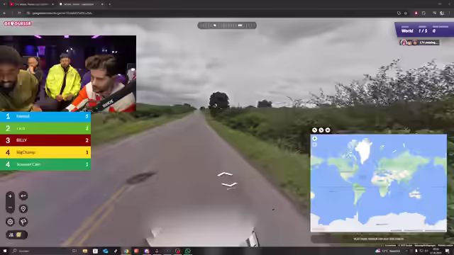 01:39:31Nach den vorherigen Spielen wird als nächstes Geoguessr gespielt, ein Spiel, bei dem es darum geht, den Standort auf einer Karte zu erraten. Die Regeln werden erklärt: Es gibt drei Runden, und wer am nächsten am tatsächlichen Ort liegt, gewinnt die Runde. Ein kurzes Beispiel wird gezeigt, um das Spielprinzip zu verdeutlichen. Es wird betont, dass es schwierig sein kann, wenn man in Amerika landet, da die Entfernungen sehr groß sind. Ein Timer von einer Minute wird für jede Runde festgelegt. Die erste Runde beginnt, und die Spieler versuchen, anhand von Hinweisen wie Straßenschildern, Sprache und Landschaft den Standort zu erraten. Es wird über verschiedene mögliche Standorte diskutiert, darunter Michigan, Virginia, L.A., Miami, Texas und Alabama. Am Ende der Runde tippt der erste Spieler auf einen Ort. Die nächste Runde beginnt, und der nächste Spieler versucht, den Standort zu erraten, wobei er von einem anderen Spieler gelenkt wird. Es wird überlegt, ob es sich um Thailand handelt, und schließlich auf Sri Lanka getippt, was richtig ist.