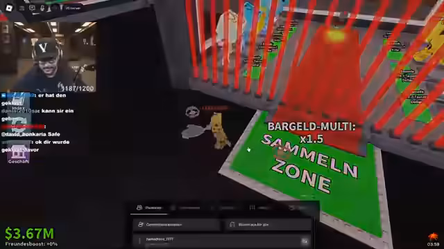 04:07:20Der Streamer analysiert die Spielmechaniken im Detail und entwickelt eine Strategie, die stark auf das Bezahlen von Robux setzt, um seine Gegner zu überwinden. Er kauft Items, um Basen aufzubrechen, und finanziert so Teamaktionen. Gleichzeitig ärgert ihn, dass seine Base immer wieder von anderen Spielern belagert wird, was ihn dazu zwingt, sich ständig neu zu positionieren und zu verteidigen.