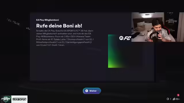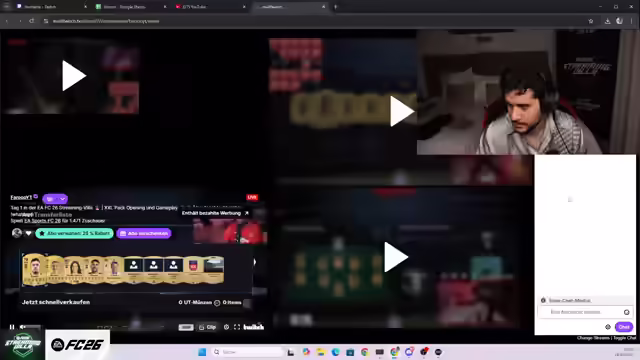 00:51:32Der Streamer lädt erneut Guthaben auf und erhält ein EA Play Pack mit einem Draft-Token und Leih-Profis. Er behält seinen Jude Bellingham. Er lädt erneut Guthaben auf, ohne Codes zu verwenden. Der Streamer erwähnt eine kleine Challenge bezüglich der Subs. Er fragt, wie viele Subs er hat und sagt, dass der Stream in einen Sub-Marathon umgewandelt wird, wenn eine bestimmte Anzahl erreicht wird. Er spricht mit Eli über Discord und stellt fest, dass sein GoXLS falsch eingestellt ist. Er macht das Spiel leiser und fragt, ob es so gut ist. Der Streamer plant, bis 100k runterzuziehen und früher als alle anderen auf die RTG zu gehen. Er möchte beides gleichzeitig haben.