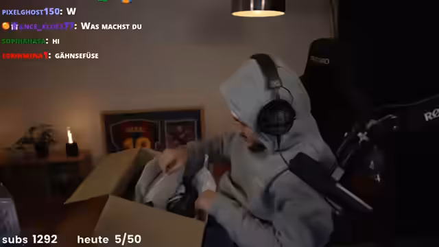 00:03:30Der Stream startet mit einer energetischen Begrüßung des Chats. Der Streamer stellt neue Kleidung vor, darunter einen Pullover von Nahim, den er als sehr gemütlich, aber auch ein wenig wie einen Roblox-Charakter beschreibt. Ein weiteres Paket von der Marke Returnity wird gemeinsam ausgepackt. Es handelt sich um einen Nitz Sweater und Schuhe, die der Streamer für sehr cool hält. Nebenbei werden aktuelle Themen wie das Champions-League-Spiel Gala gegen Liverpool angesprochen, bei dem der Streamer Gala verlieren möchte. Die angekündigten Inhalte des Streams sind unter anderem ein Elefanten-Zahnpasta-Experiment, Reaktionen auf Horror-Videos und ein gemeinsamer Minecraft-Abend.