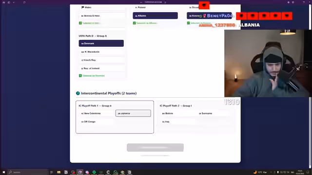 00:40:54Der Streamer wechselt das Thema und geht auf die Fußball-Weltmeisterschaft ein. Er nutzt eine Website, um eine detaillierte Prognose für den Turnierverlauf abzugeben und seine Tipps für jedes Spiel zu nennen. Anschließend beantwortet er ein Fußball-Quiz, bei dem er einige Fragen knapp verpasst. Die Interaktion mit dem Chat bleibt dabei zentral, wobei die Zuschauer aktiv in die Entscheidungen mit einbezogen werden, zum Beispiel durch die Auswahl von Ländern für die Segment 'Erkunde ein Land bis es hässlich ist'.