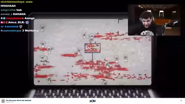 00:19:16Die Eskalation gipfelt im Spiel darin, dass fast alle Figuren, sowohl Kreise als auch Vierecke, in einem blutigen Konflikt umkommen. Der Streamer kommentiert die Todesfälle und macht die Medien, also seine eigene Kamera, für den Untergang aller verantwortlich. Nach dem traurigen Ende des Spiels erforscht der Streamer weitere Werke des Entwicklers und stößt auf einen weiteren Teil, in dem er als König agiert und Gegner in einem anderen Minispiel besiegen muss.