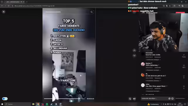 00:05:55Der Streamer kündigt an, Zuschauer-Frisuren zu bewerten und teilt dabei eine persönliche Geschichte über seine eigene katastrophale Frisur als 16-Jähriger, die er als 'sehr irakisch' beschreibt. Während der Bewertungen kommt es zu humorvollen und kritischen Kommentaren zu verschiedenen Frisuren, einschließlich derer von 'Hamid' und anderen, wobei er auf die Bedeutung von Übergängen, Haarstruktur und Kopfform eingeht. Die Zuschauer werden dazu aufgefordert, ihre eigenen Frisurbilder einzusenden.