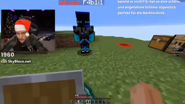 04:19:11Für die Warzone wird ein Holzschwert craftet, da teure Items riskant sind. Ein Befehl '/spawn' funktioniert nicht, stattdessen wird '/warzone' verwendet, um zur Kriegszone zu gelangen. Dort angekommen, werden leere Truhen vorgefunden, gefolgt von Verfolgungen durch andere Spieler. Hungerprobleme erschweren Bewegungen, und Sprünge zwischen Inseln werden riskant, da keine Nahrungsmittel vorhanden sind.