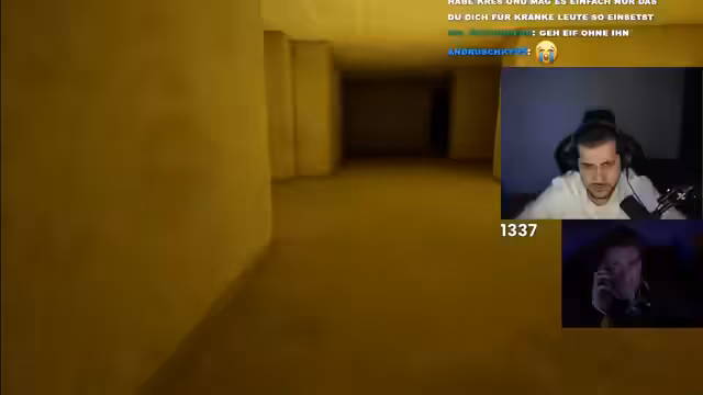 01:26:12Zu Beginn des Streamabschnitts treten erhebliche technische Probleme auf. Der Streamer und sein Mitspieler Riton leiden unter wiederholten Doppel-Echos ihrer eigenen Stimmen im Spiel, was die Kommunikation massiv erschwert und den Ablauf stört. Nachdem das Problem kurzzeitig gelöst scheint, erkennen die Spieler, dass sie sich in einem falschen Level des Horrorspiels befinden. Ihr Ziel ist es, zurück zum ersten Level zu gelangen, da dort ein geheimes Level versteckt sein soll. Die Suche nach dem richtigen Weg gestaltet sich jedoch schwierig, und der Streamer äußert starke Frustration über die unübersichtliche Spielumgebung und die fehlende Orientierung.