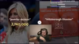 05:06:51Der Streamer wechselt das Spielmodul und interagiert stark mit seinem Chat in einem "Higher or Lower"-Quiz. Gemeinsam versuchen sie, den Weltrekord zu brechen. Die Stimmung ist hoch, da der Chat mit Einträgen und "Gifted Subs" aktiv unterstützt wird und die Zuschauerzahl kontinuierlich steigt, was den Stream zu einem besonderen Erlebnis macht.