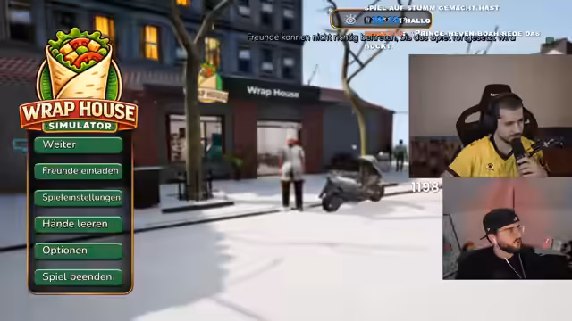 02:41:08Die Streamer starten schließlich den 'Gleich Döner Simulator' zusammen. Nach einigen technischen Startschwierigkeiten, bei denen der Discord-Echo und die Mikrofone angepasst werden müssen, beginnen sie gemeinsam ein Restaurant zu führen. Sie gestalten den Laden, indem sie ihm den Namen 'Komplett Kebab' geben und stellen die ersten Vorräte wie Hühnerdöner und Salat her. Dabei wird die Authentizität der Simulation diskutiert und die ernste Arbeitsweise im Gegensatz zum sonstigen humoristischen Stil thematisiert.