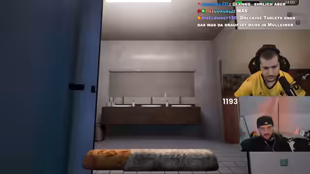 02:59:05Die Streamer kämpfen mit den Mechaniken des Spiels, insbesondere bei der Zubereitung der Döner. Sie haben Schwierigkeiten, das Fleisch vom Spieß zu nehmen und den Teig richtig zu verarbeiten. Dabei kommt es zu absurden Situationen, wie einem Kunden, der auf der Toilette einen Döner zurücklässt. Neben den spielerischen Herausforderungen unterhalten sie sich über die Belastung des echten Dönerjobs, den Geruch und die frühmorgendlichen Arbeitszeiten, was die Simulation noch realistischer erscheinen lässt.