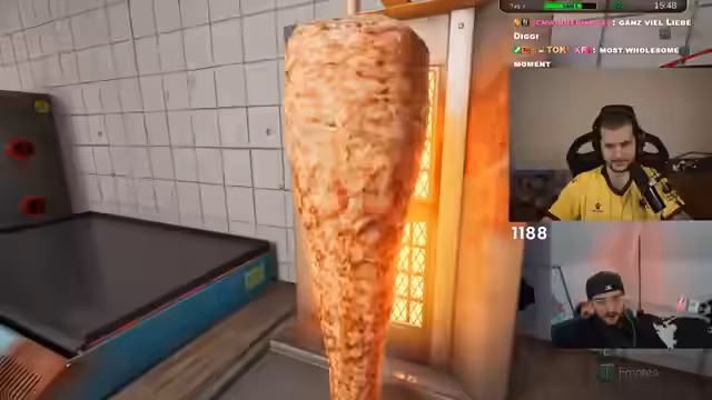 Es wurde eine Runde im Döner Simulator mit Gleggmire gestreamt. Gemeinsam wurde der Laden 'Komplett Kebab' gegründet und finanzielle Nöte durchgespielt. Trotz des chaotischen Betriebs blieb die Stimmung humorvoll und selbstironisch.
