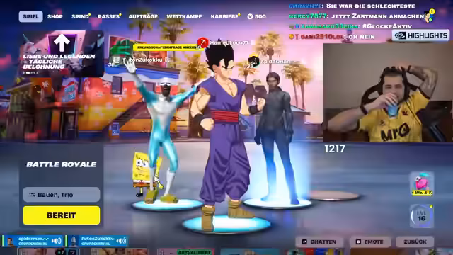 00:37:38Der Streamer ist wieder in Fortnite und möchte mit Gleggmire spielen. Nachdem Gleggmire den Streamer erfolgreich auf Discord hinzugefügt hat, tritt der Streamer dem Fortnite-Squad von Gleggmire bei. In diesem Squad befindet sich auch ein User namens 'Bettywan', der mit der Situation etwas überfordert scheint. Der Streamer nutzt die Gelegenheit, um gemeinsam mit den Spielern ein spontanes YouTube-Video für einen Make-A-Wish-Clip aufzunehmen und interagiert dabei mit allen Beteiligten.