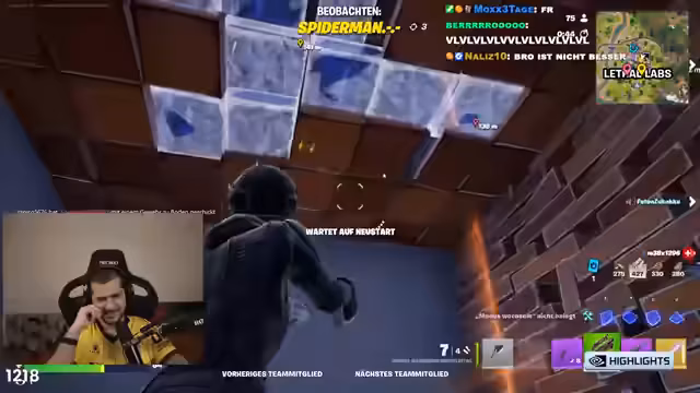 01:17:34Nach der Forderung, sich vorzustellen, stellen sich mehrere Spieler vor. Einer von ihnen erzählt, dass er Hamed heißt, in Deutschland aufgewachsen ist, jedoch wegen einer Messerstecherei nach Syrien abgeschoben wurde und nun wieder dort lebt. Ein anderer Spieler gibt an, im Spiel Spider-Man zu sein, aber in echt Maximilian Steinböck zu heißen und Deutscher zu sein. Es kommt auch die Frage auf, ob er aus Österreich kommt.