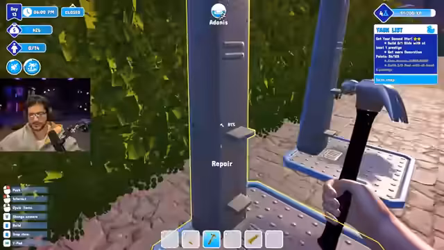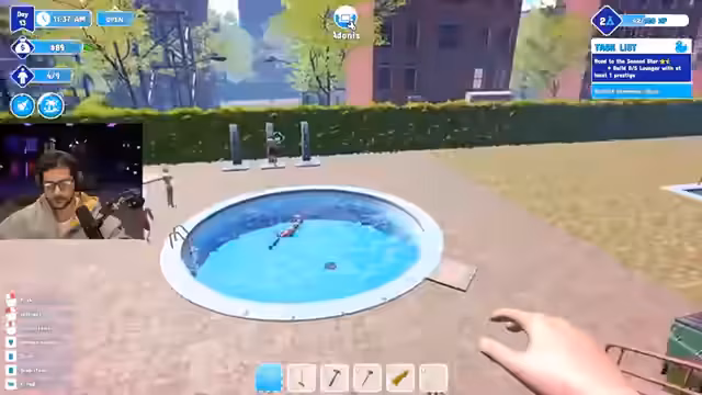 00:30:51Der Streamer beschließt, den Wasserpark komplett abzureißen und neu zu bauen, da er mit dem aktuellen Zustand unzufrieden ist. Er nimmt alle Erfahrungspunkte mit. Er behält die Duschen und Toiletten. Er verbessert seinen Hammer. Er reißt den Pool und die Rutschen ab. Er überlegt, wo er die neuen Mülltonnen platzieren soll. Er baut einen mittigen Pool, ein Kinderbecken und einen Jacuzzi Bereich. Er hat kein Geld mehr. Er kann keine Slide-Peste verkaufen, da er keine Rutschen hat. Er lässt die Besucher morgen rein, obwohl es keine Toiletten gibt. Er füllt Wasser in die Pools. Er geht schlafen und überlässt Adonis den Park. Er hofft, dass er mehr Leute aufnehmen kann. Er stellt fest, dass er Toiletten braucht und kauft diese. Er muss einen Gast retten, der fast ertrinkt. Er stellt Liegen auf.