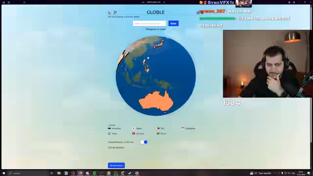 00:13:22Nach einigen kürzeren Themen wechselt der Streamer zu interaktiven Spielen mit dem Chat. Dazu gehört ein Geografie-Ratequiz, bei dem die Zuschauer Länder erraten müssen, basierend der Entfernung zum Zielland. Anschließend folgt ein Wettbewerb zwischen Streamer und Chat-Mitglied, bei dem es darum geht, den anderen mit einem anstößigen Satz zu provozieren. Der Verlierer muss ein Date planen.
