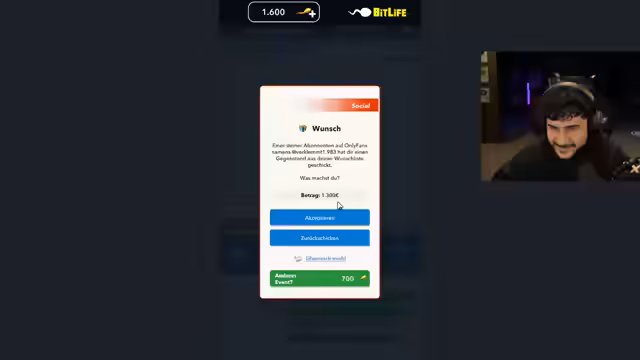 01:58:28Der Streamer startet ein neues Spiel im BitLife-Simulator mit der ungewöhnlichen Vorstellung, eine OnlyFans-Model zu spielen. Er erstellt die Figur 'Lily Rose' mit dem Ziel, später auf dieser Plattform erfolgreich zu sein. Die Charakterentwicklung beinhaltet frühe Lebensentscheidungen wie Schulwahl, Freundschaften und die Bedeutung des Aussehens.